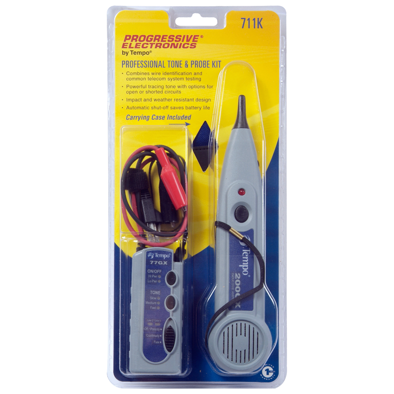 Tempo 711K kablo bulucu (ton üretici ve prob seti) , profesyonellere yönelik sade bir çözümdür. Setin içerdiği 77GX ton üretici, otomatik kapanma ve ton çıkış gücü ayarı gibi kullanışlı özelliklere sahiptir. Setin içeriği, 1 adet 77GX ton üretici, 1 adet 200GX prob ve 1 adet taşıma çantasından oluşmaktadır.